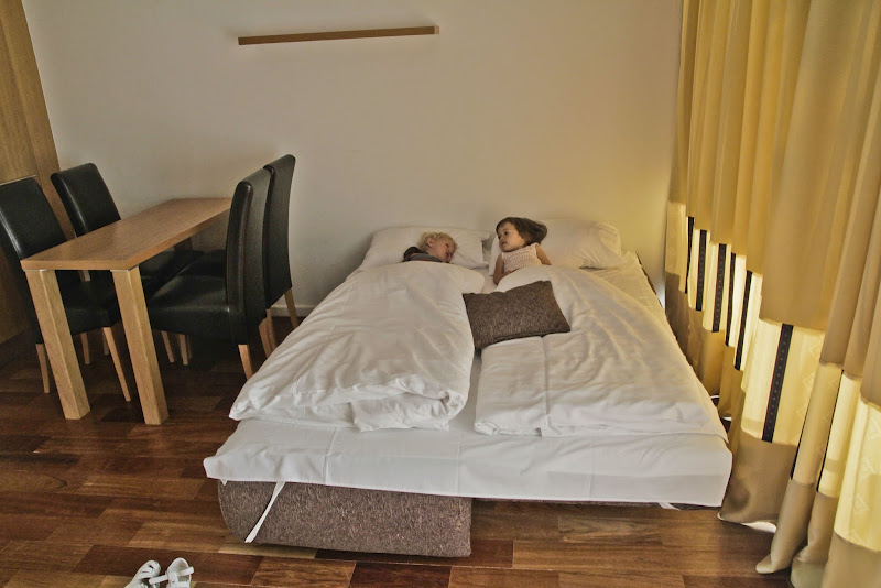 Діти вибрали собі ліжка і ми зібрались зразу купатись.