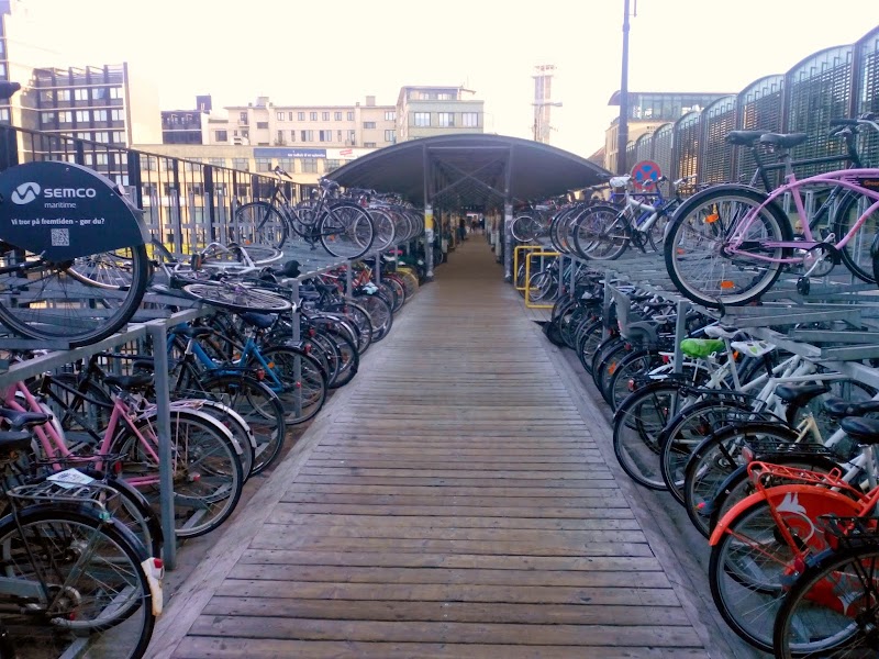 В Орхусі є система велопрокату, а точніше байкшерінгу. Я той момент спробувати якось забув. Тобто я бачив ті парковки з велосипеами, але забув їх сфоткати та і спробувати забув. Загалом система стара і дуже примітивна. Якщо ви колись брали в супермаркеті візок, який пристібнути до іншого візка ланцюжком, і щоб його взяти треба вставити монету, а потім коли повернете візок, то монета вам повернеться назад. ТАка сама система з тими велосипедами. Треба вставити монету в 0 крон (~50 грн.) і велосипед відстібнеться. Їздити на ньому можна скільки хоч, а потім пристібаєш і забираєш монету. Знаючі люди кажуть що велосипеди трешнякові. Ось чуже фото