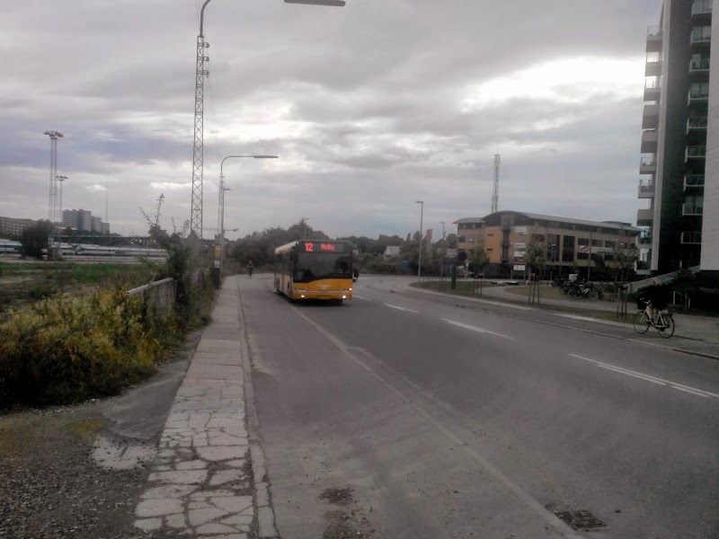 Є одвічне питання як інтегрувати велодоріжки і зупинки громадського транспорту. В Орхусі не парились і пропустили велодоріжки через зупинки. На фото нижче видно павільйон зупинка, велодоріжку і кишеньку для зупинки автобуса. До слова кишенька в ширину лише на пів автобуса. Але коли автобус заїзжає в неї, решта смуги є достатньо щоб його обї’хати “не танку”, а також уникає проблем з невипусканням автобуса з кишеньки. ДБНам знову привіт )))